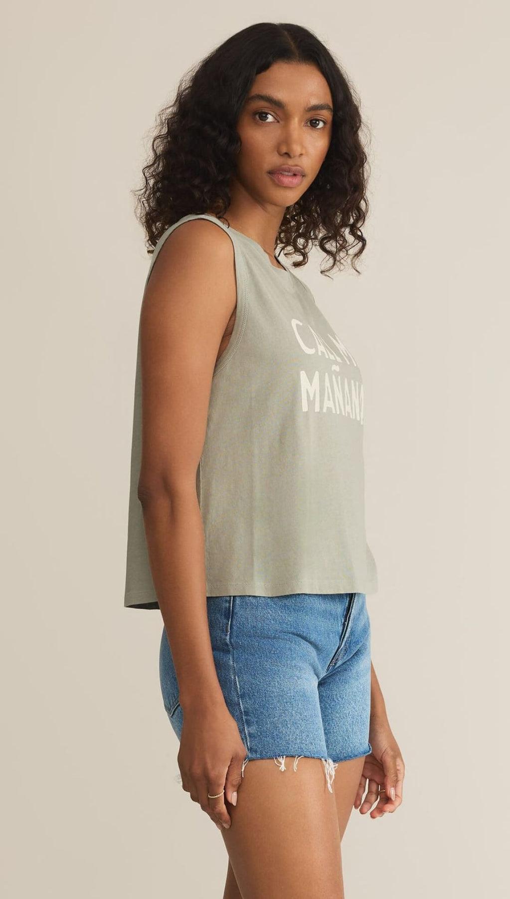 Get ready for summer with the Manana La Mer Tank! This sage green muscle tank is perfect for any beach day or outdoor adventure. Its lightweight material will keep you cool and comfortable while its trendy design will have you looking stylish. Don't miss out on this must-have piece for your summer wardrobe!