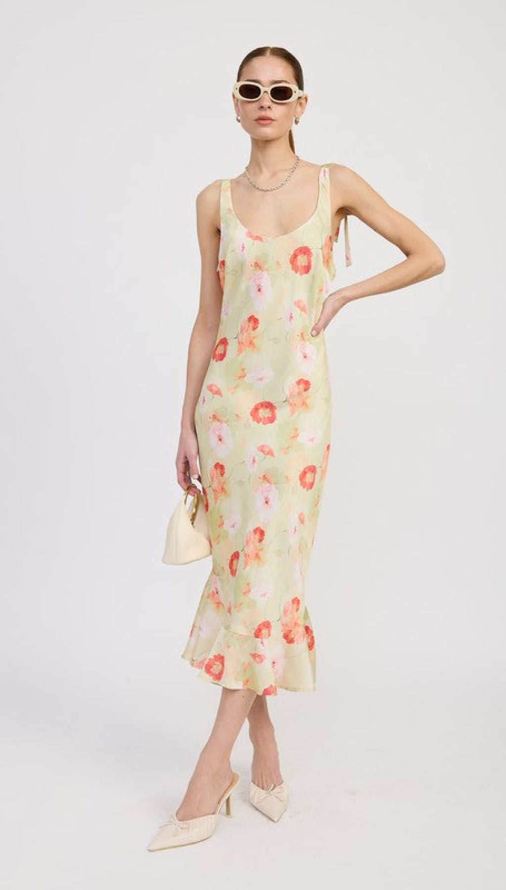 Step into sunshine and style with the Central Park Midi Dress, a playful floral print that brings a fresh burst of color to your wardrobe. Designed to flatter, this midi dress fits true to size—our model, standing tall at 5'9", wears a size small to showcase its perfect silhouette. Fully lined, it offers comfortable wear and easy movement. Imported with care, this dress is your go-to for garden parties, brunch dates, or simply brightening up any day with a touch of floral charm.