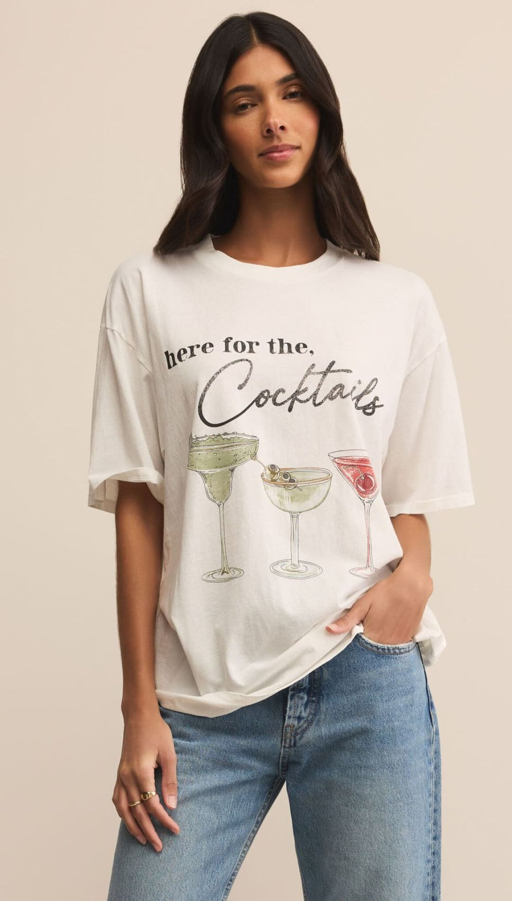 Introducing our Cocktails City Tee! Perfect for any cocktail lover, this white tee lets everyone know you're here for the cocktails. Show off your passion for drinks with this stylish and comfortable shirt. Cheers to the perfect addition to your wardrobe!
